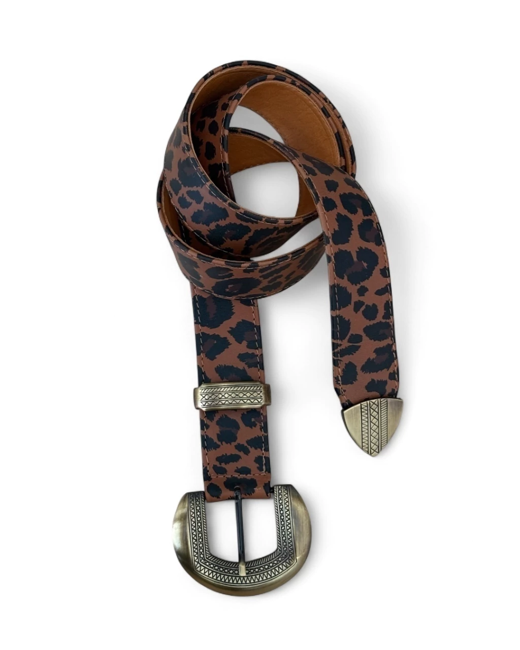 ¡Completa tu outfit! Cinto realizado 100% en cuero animal print, interior forrado en cuero suela.